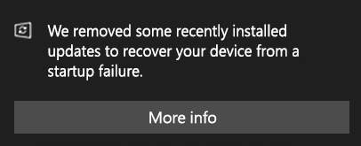Windows updates will be automatically removed when Windows detects that it has recovered from a startup failure after all other “automatic recovery attempts have been unsuccessful.”